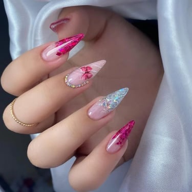 Eu adoro quando posso soltar a criatividade na Nail Art Personalizada! Nesse serviço, transformo cada unha em uma pequena obra de arte, feita especialmente para refletir o seu estilo e personalidade. Utilizo técnicas de pintura, adesivos, pedrarias e efeitos modernos para criar desenhos exclusivos — do delicado ao mais ousado. Cada detalhe é pensado com carinho para que suas unhas fiquem únicas, cheias de charme e com aquele toque especial que só uma arte feita à mão pode oferecer.